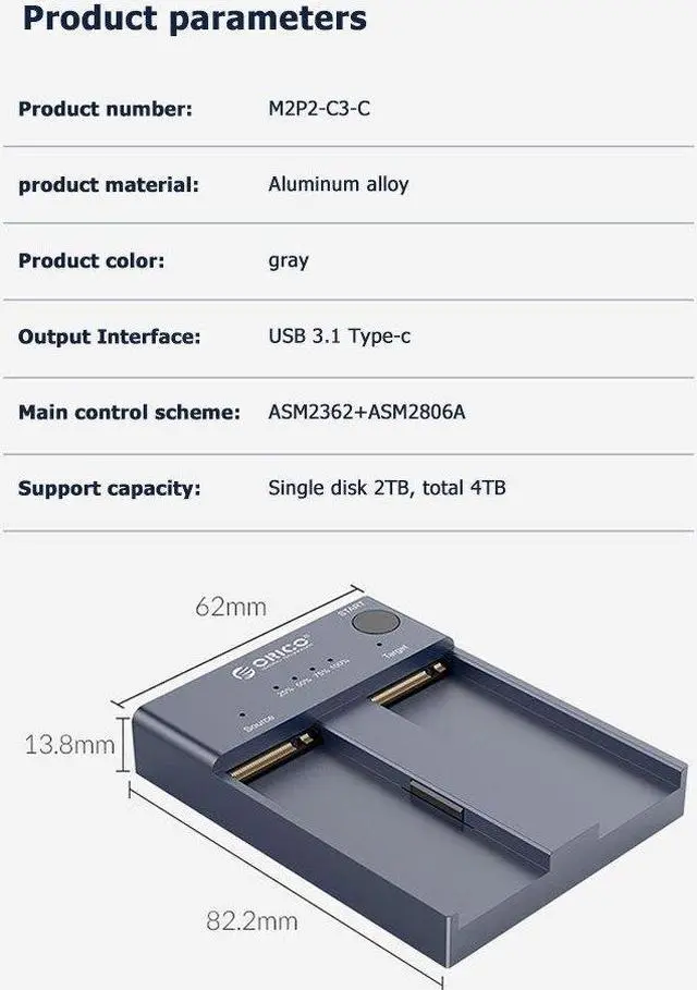 Dual Bay M. 2 NGFF NVMe SSD Docking Station M2P2-C3-C 10Gbps USB 3. 1 Type-C External Hard Drive Dock for 2242 2260 2280 22110 Offline Clone