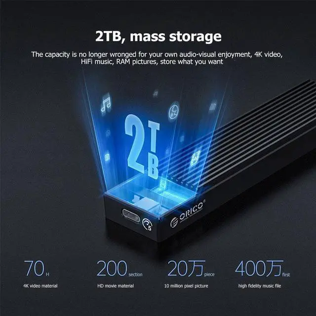 Using for Realtek RTL9210 high-end master control solution, external USB 3.1 Type-C output interface, can support up to 10Gbps transmission rate.