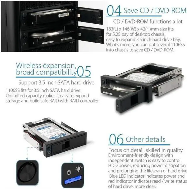 1106SS 3.5 inch CD-ROM Space SATA HDD Mobile Rack SSD Hard Drive Conversion Internal Mobile Backplane Enclosure