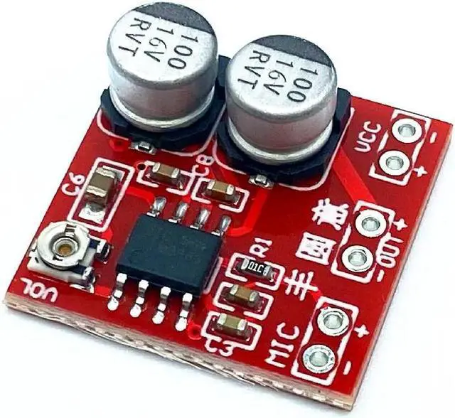 Adopt LM386 amplifying chip, the magnification can be adjusted between 20 times and 200 times through the adjustable resistor on the board, suitable for electret microphone