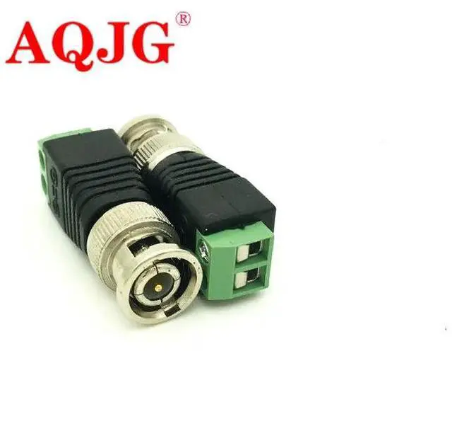 2x Coax CAT5 BNC Male Connector Plug DC Adapter Balun Connector for CCTV Camera Security System Surveillance Accessories