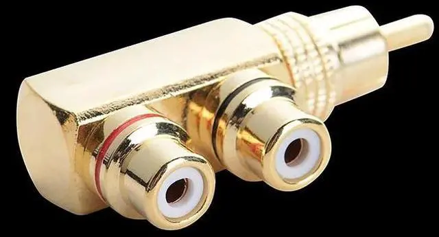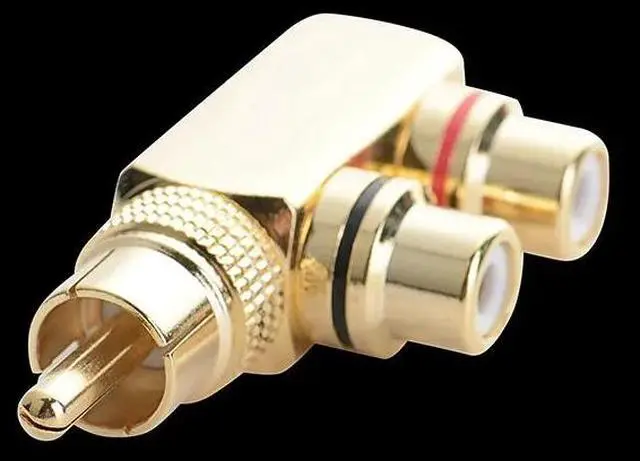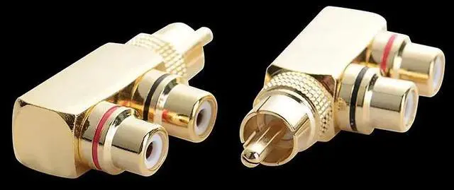 • RCA Splitter,RCA Male to 2 RCA Female Right Angle Plug Splitter Adapters M/F Gold-Plated Metal Connector,gold