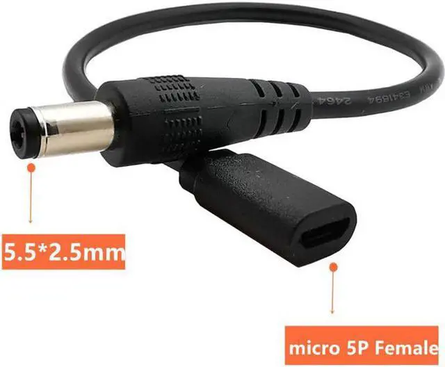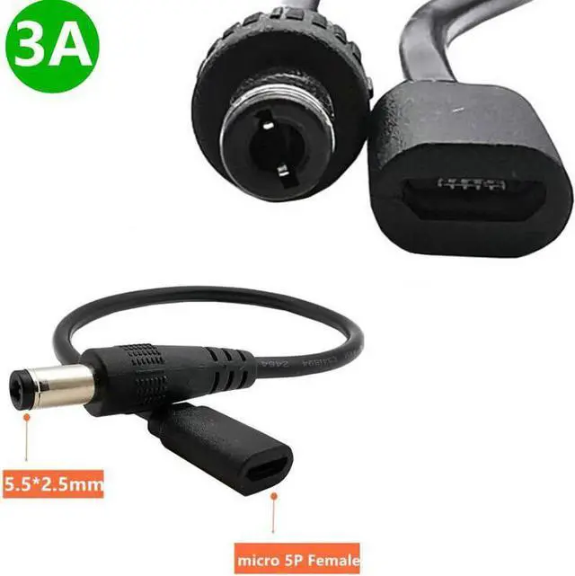 • DC 5.5mm x 2.5mm Male to Micro USB 5pin Female DC Power Supply Extension 22AWG 3A Adapter Cable