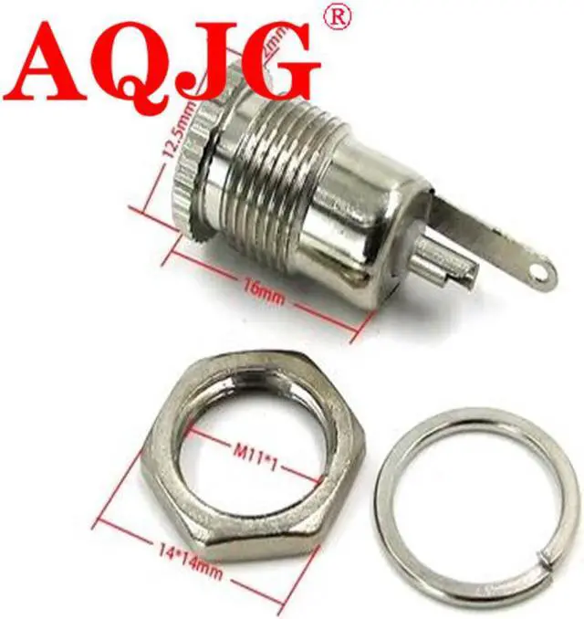 • 5pce/LOT DC099 5.5 mm x 2.1mm DC Power Jack Socket Female Panel Mount Connector Metal DC-099 Open Hole 11MM 5.5*2.1 5.5*2.5