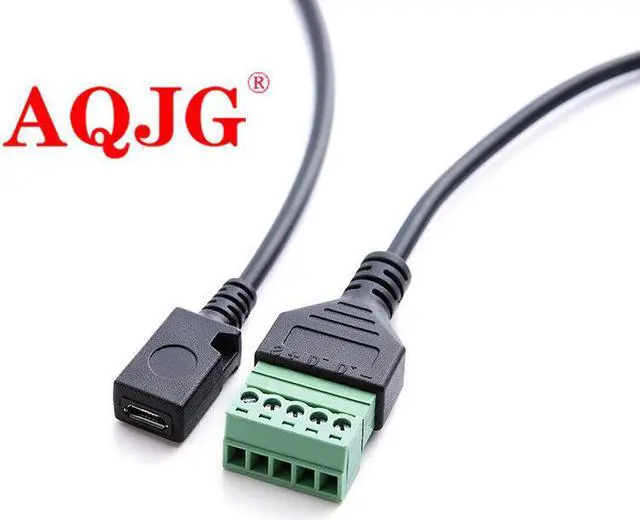 • Solderless USB micro5p female to green terminal screw wiring 5 core wire transmission data charging extension cable
