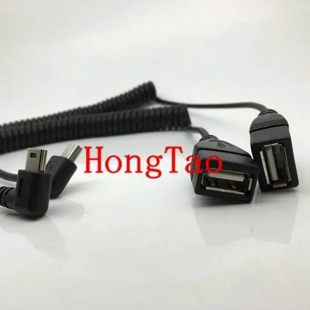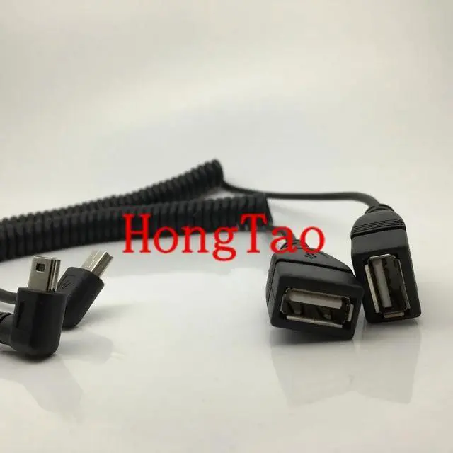 • Mini 3ft 1 M spring in spiral male USB 2.0 Mini 5 Pin USB Data Sync Charger Cable Left Right Angle 2pcs