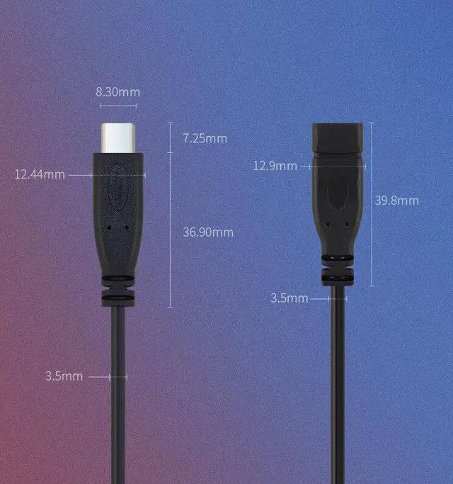 • 20cm Black Type-c Usb FeMale male Plug 2 4 wire Power Cable Cord stripped Maximum current 3A for Raspberry pie DIY