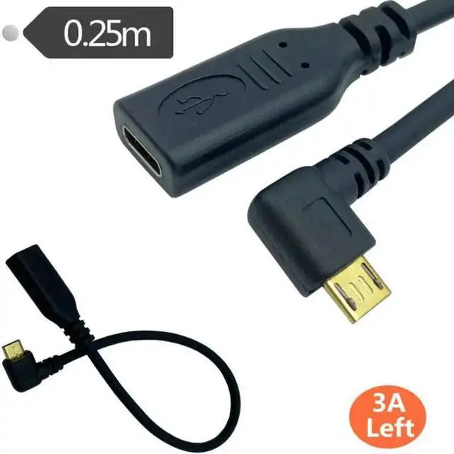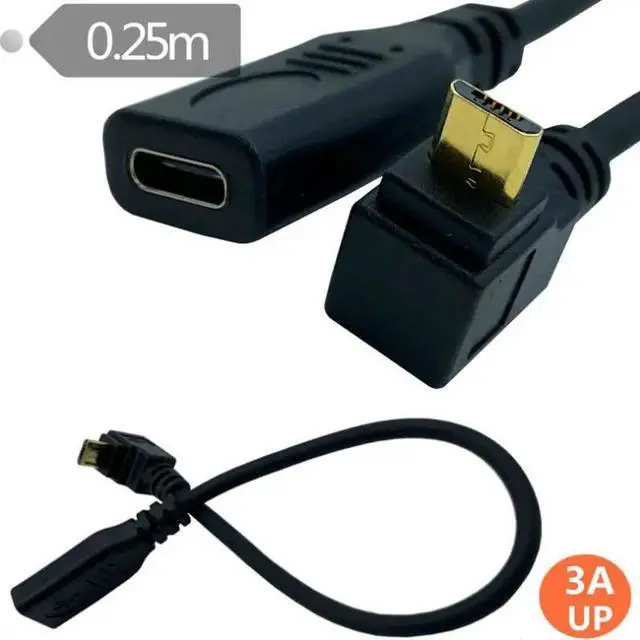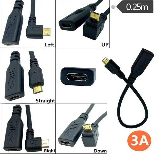 • Gold plated 2428 AWG copper USB 3.1 Type C Female to micro USB 2.0 Male Angled Data Sync Power Supply Supply Cable Cord