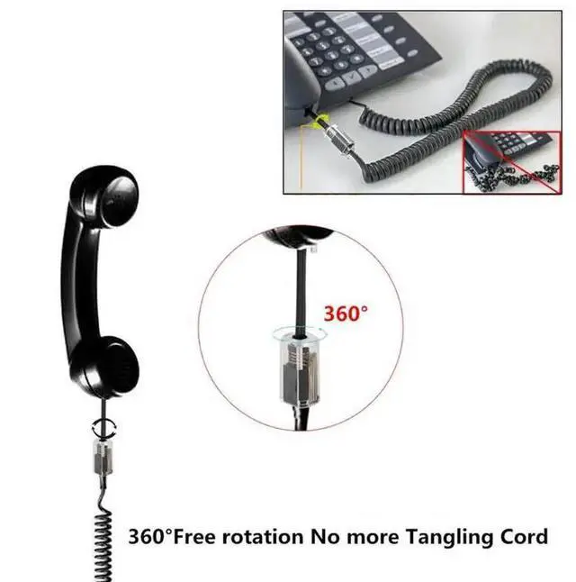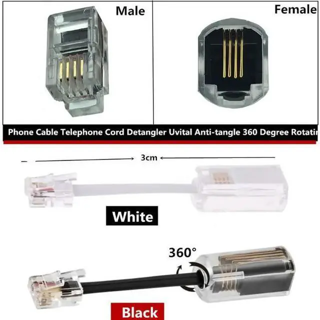 • Universal RJ11 Telephone Cord 360 Degree Extended Rotating Anti-tangle Landline Swivel Cable Rotating Landline Swivel Cord