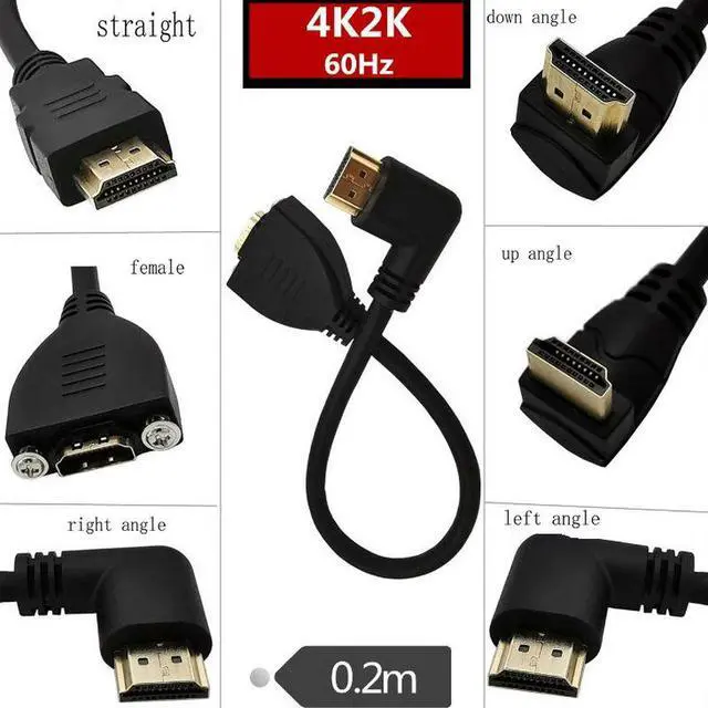 4K2K 60HZ Angle HDMI-compatible Male to Female Extension Cable with Screw Hole Panel Mount Support 4K 60hz 0.2m