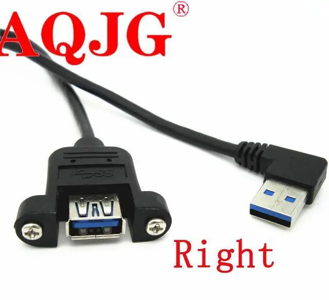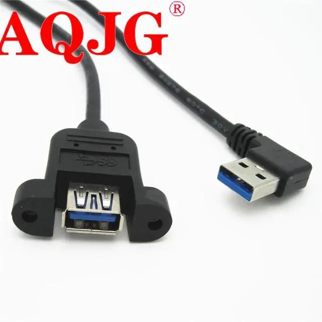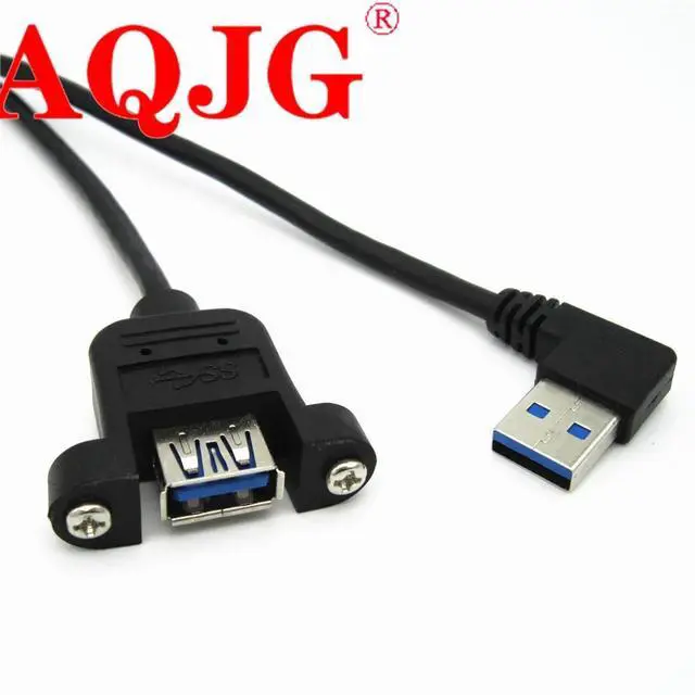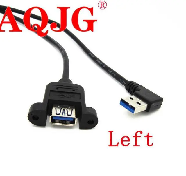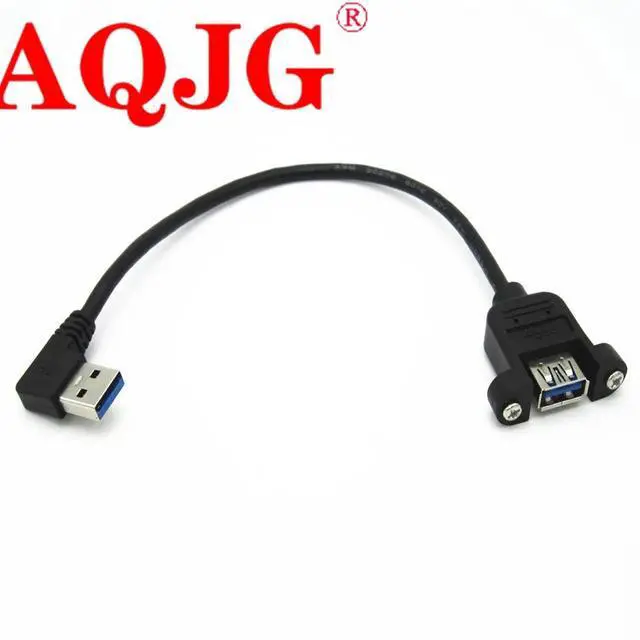 • 1pcs Black 25cm USB 3.0 A Female Jack Panel Mount to Male Plug Left Right Angled Extension Cable