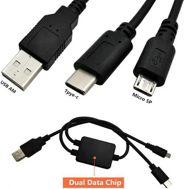 • 2 in 1 USB 2.0 Male to Type-C Male & Micro USB Male Data Charger Cable For macbook google pixe