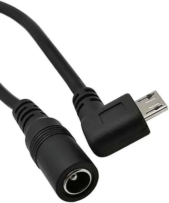 • 5.5x2.1mm DC Power Plug Waterproof Jacket Female To Micro / Mini USB Male Angle Adapter Cable