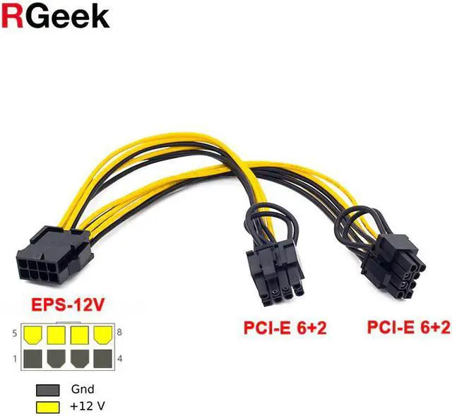 • 12V EPS CPU 8 Pin to Dual 8(6 2) Pin PCIE PCI Express Adapter for Graphics Card Power Extension Cable 20cm