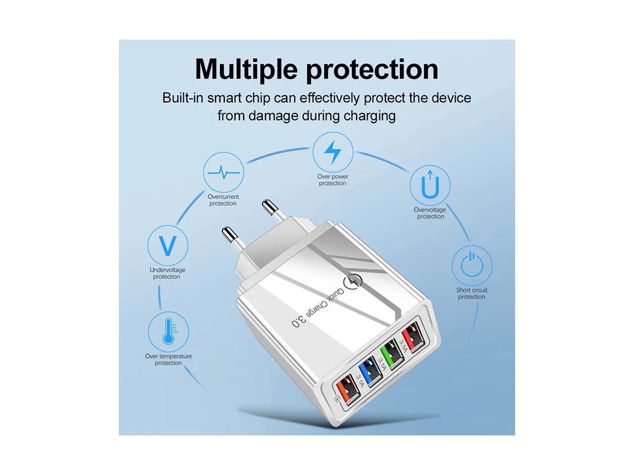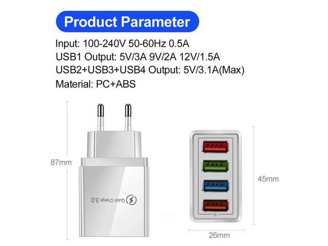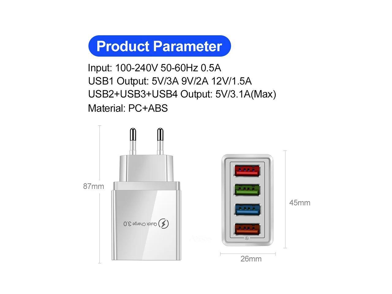 5V 3A USB Charger Fast Charging Quick Charge 3.0 4.0 EU/US Fast Charger QC 3.0 4 Ports USB Phone Charger Tablet Charge Adapter