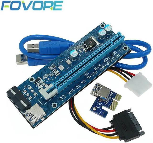 • PCI Express PCIE PCI-E Riser Card 4 Pin Power Cord 1X 16X USB3.0 Extender Adapter LED Mining