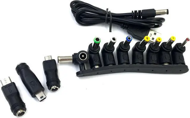 Universal Power Cable, USB to DC 5.5 * 2.1 mm Jack 5V Charging Cord with 10 Selectable Connector Tips( 5.5 * 2.5, 4.8 * 1.7, 4.0 * 1.7,