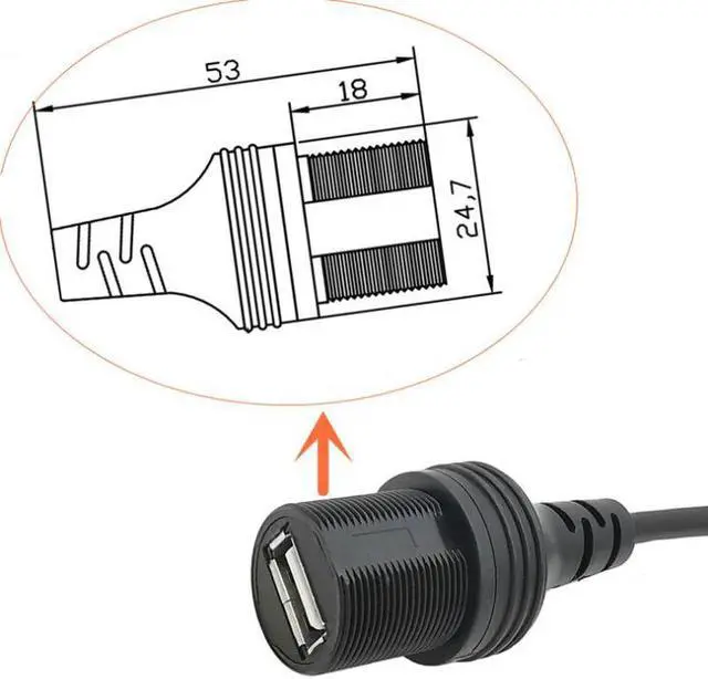 • USB2.0 A Male to A Female AUX Flush Panel Mount Extension Cable for Car Truck Boat Motorcycle