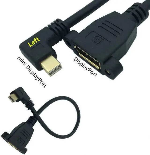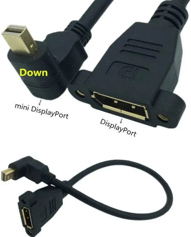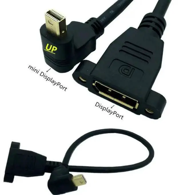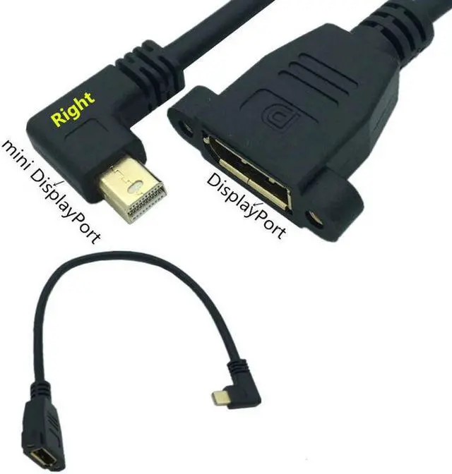• Gold mini DisplayPort Male Left / Right / Up / Down 90 angle to DisplayPort Female panel mount DP Extension Cable 0.3m