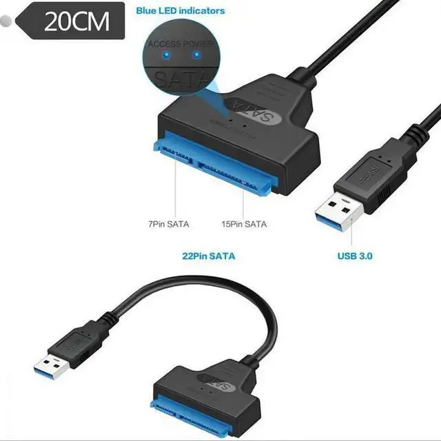 • Great-Q arrival 20cm length Usb 3.0 To SATA III 22 Pin 2.5 Inch Hard Disk Driver SSD Adapter Cable with LED for pc laptop