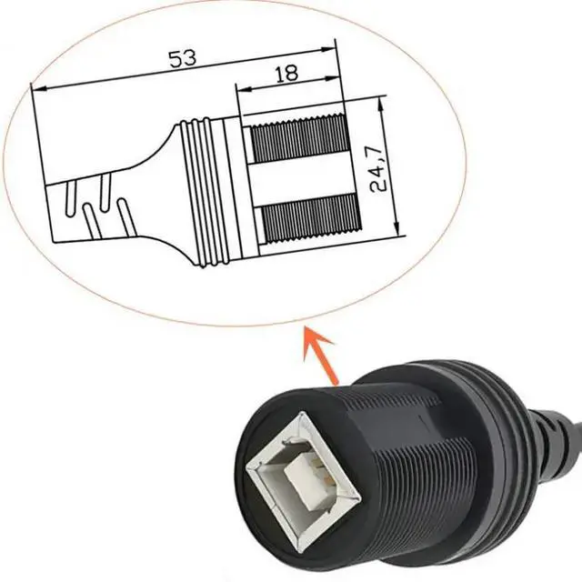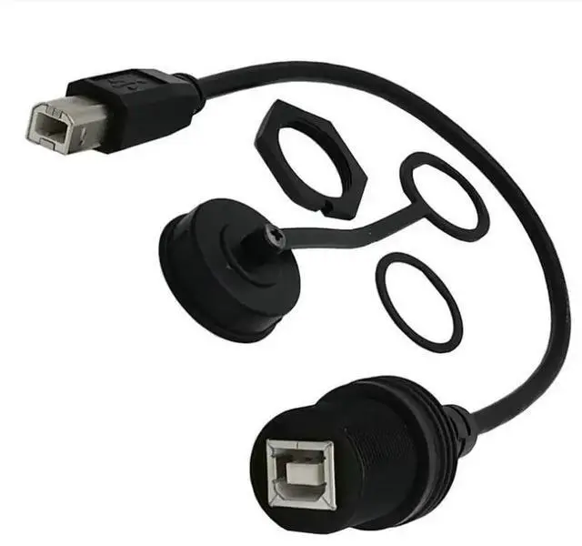 • 30Cm USB 2.0 B IP67 printing waterproof cable, USB B male to B female panel mounting waterproof connector extension cable
