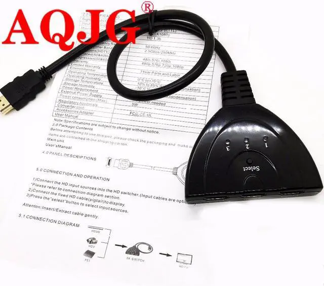 • hdmi hub 3 Port 1080P 3D HDMI Switcher Switch Splitter Hub with Cable for PC TV HDTV DVD PS3 Xbox 360 Cable box