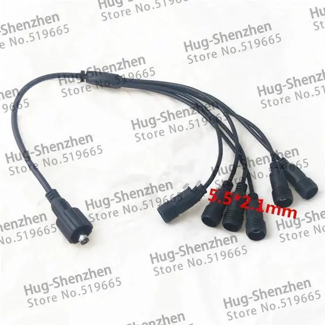 • 1pcs 6 Way 5.5x2.1mm Female to 5.5x2.1mm Male DC Waterproof Power Supply Adapter cable with 37cm cable