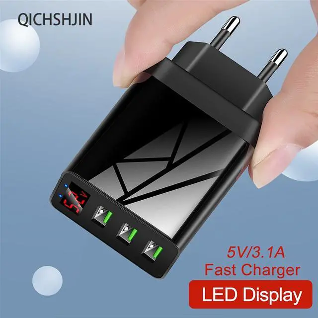 3.1A Quick Charge 3.0 LED Display 3 Ports USB Phone Charger Fast Charging Adapter For iPhone 11 Samsung S20 Charger EU Plug Wall
