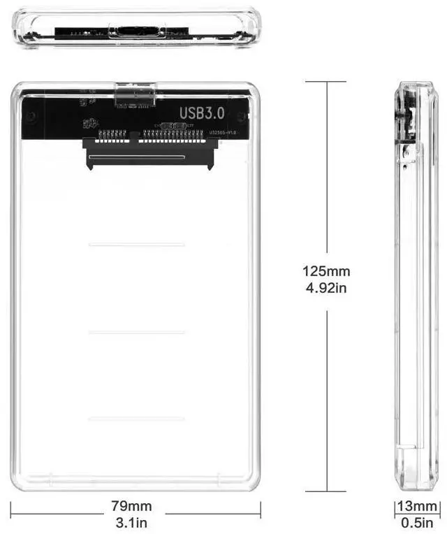 2.5" USB 3.0 SATA Hd Box HDD Hard Disk Drive External HDD Enclosure Transparent Case Tool Free 5 Gbps Support 2TB UASP Protocol