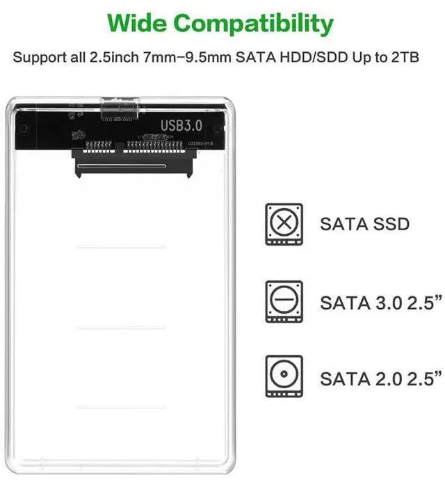 • 2.5" USB 3.0 SATA Hd Box HDD Hard Disk Drive External HDD Enclosure Transparent Case Tool Free 5 Gbps Support 2TB UASP Protocol