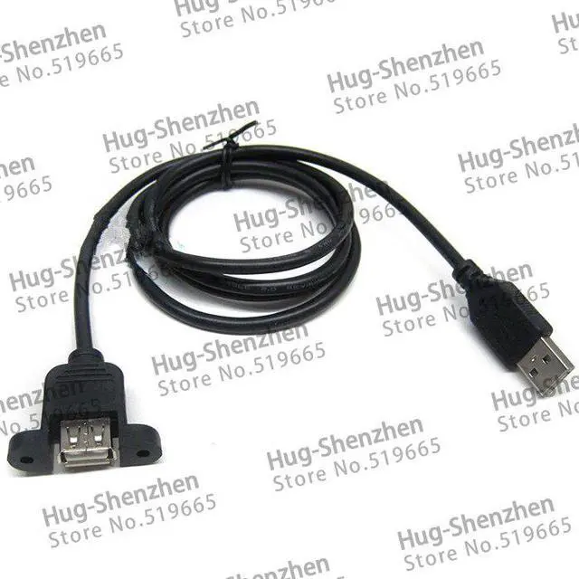black Panel Mount USB 2.0 Extension Cable (USB Male to female) 0.3m 2pcs