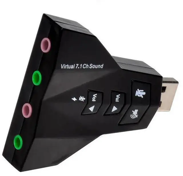 • Double Sound Card Virtual 7.1 Channel USB 2.0 Audio Adapter Dual Microphone and Headset 7.1Ch 3D Audio Sound Card