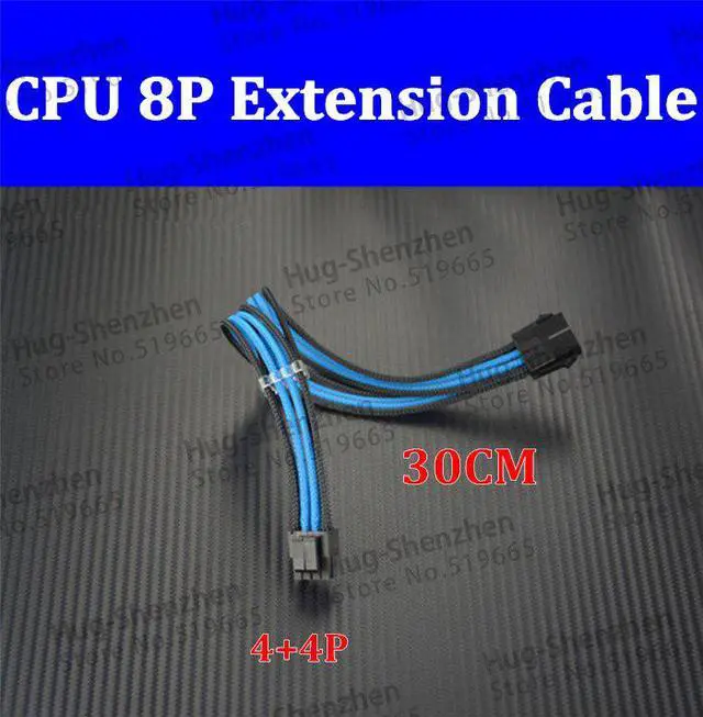 • 0.3m 8Pin Male to 8Pin Female CPU 8 pin (4+4Pin) Black&Light Blue power extension cable with Cable Clamp
