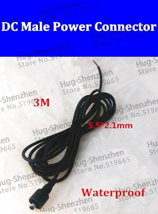 • 2pcs/lot DC waterproof male connector DC5.5*2.1mm 3m with 3M cable for Monitoring /led power cable
