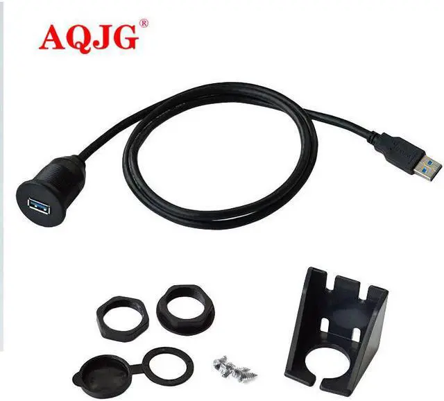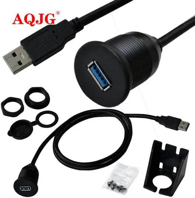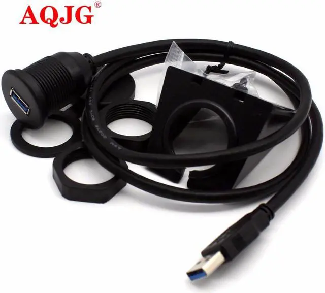 • Waterproof 1 Meter USB 3.0 Dash Flush Mount Extension Cable Male to Female Dashboard Panel for Car Boat Motorcycle