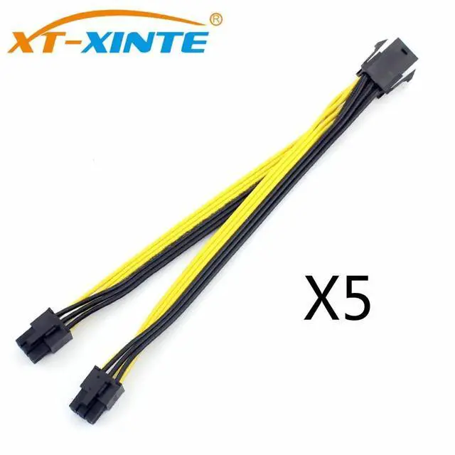 • 5Pcs PCIe PCI-E 6Pin to Dual ATX 6P Male Power Cable Splitter Cable Graphics Video Card Adapter Cord 18AWG 20cm for Miner BTC