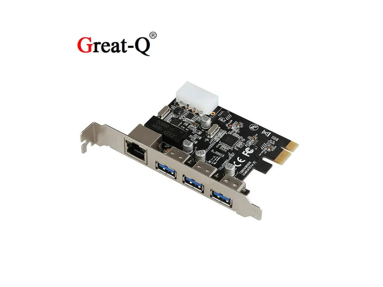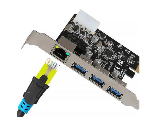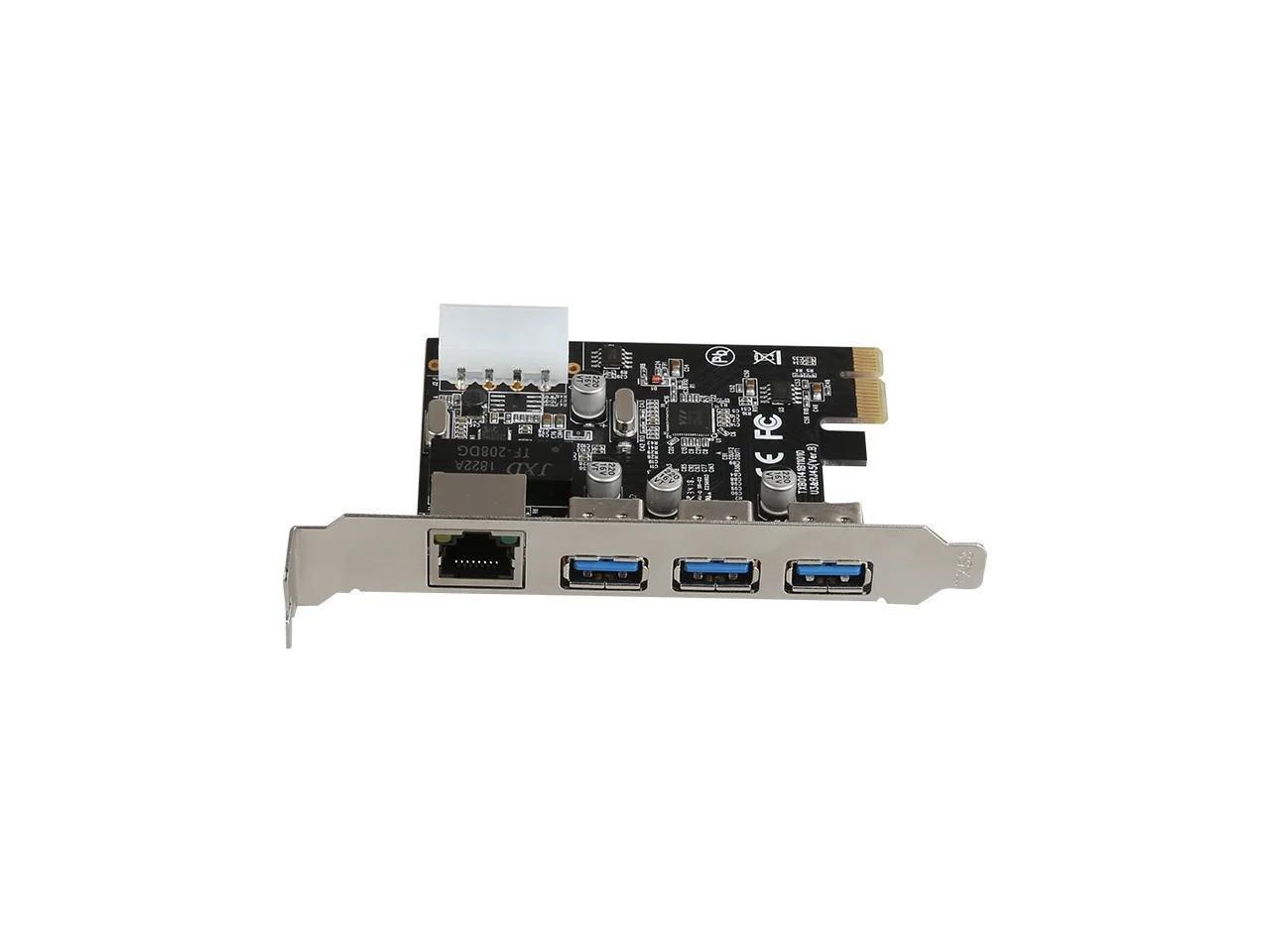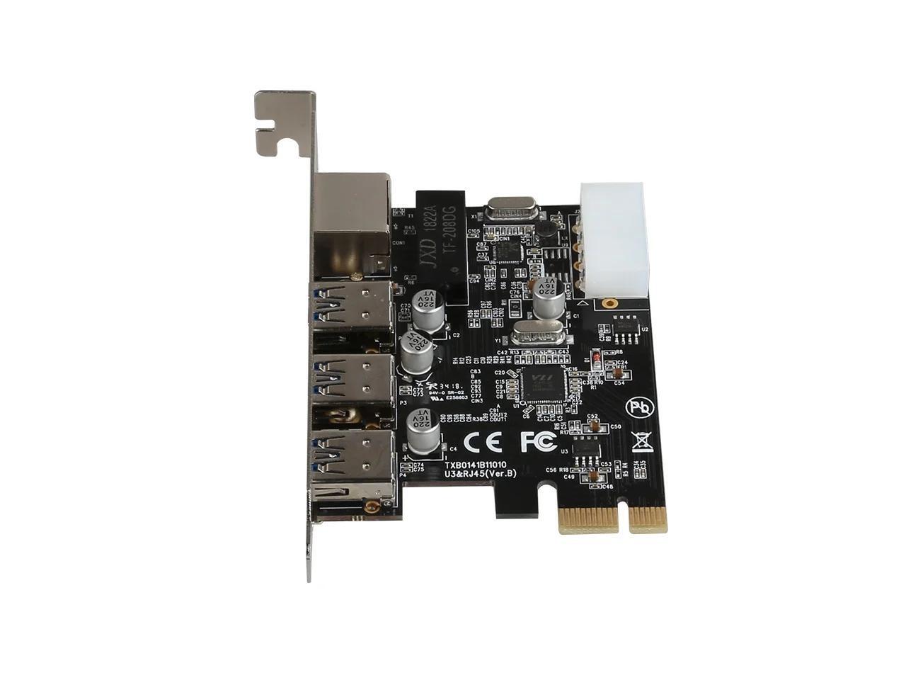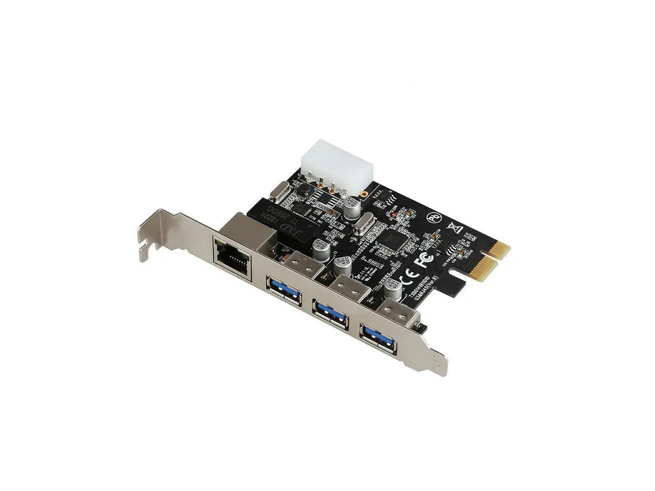 PCIe to External 3 ports USB 3.0 RJ45 Gigabit Ethernet Network card LAN Combo PCI express card with 4P power supply