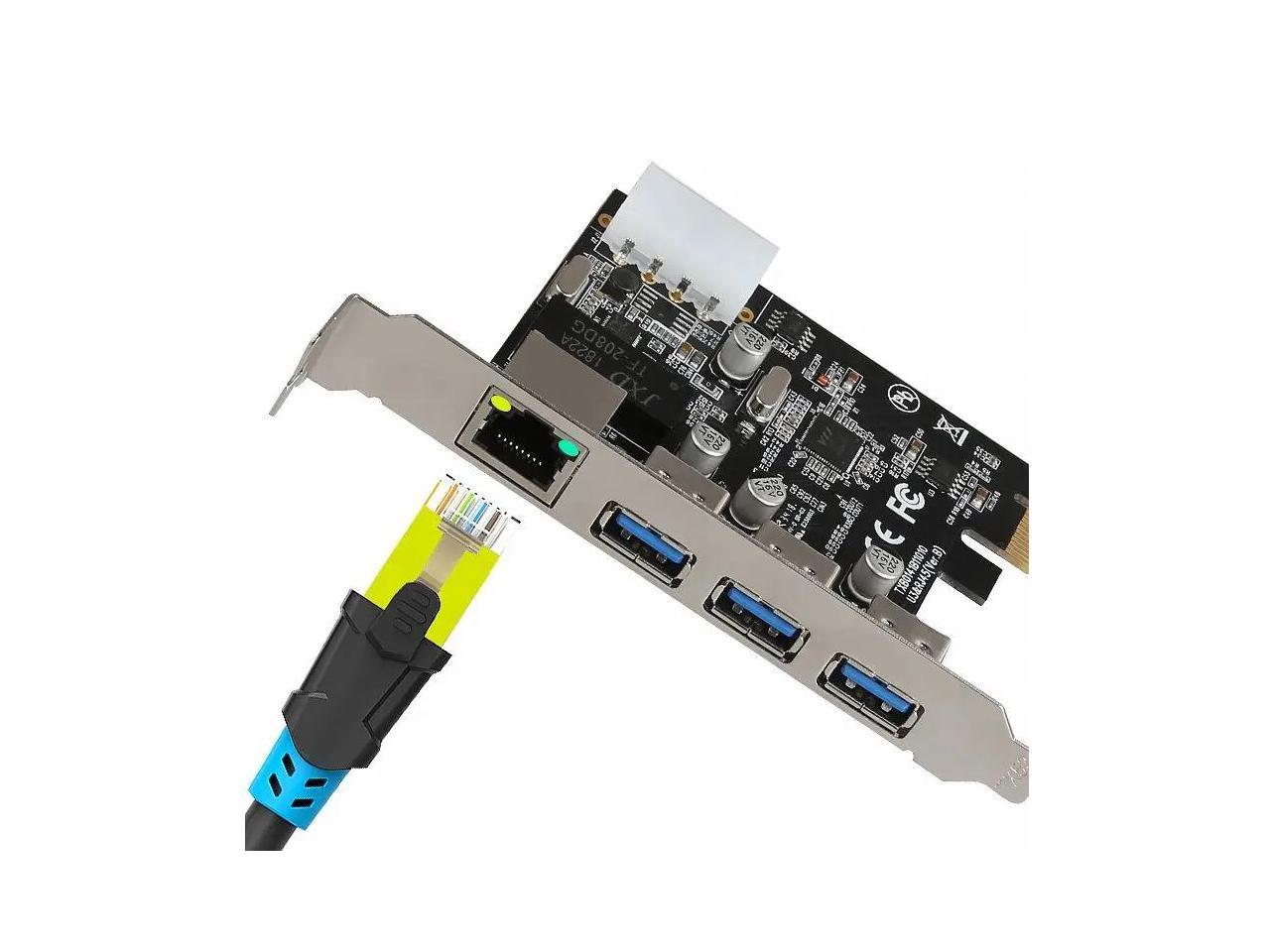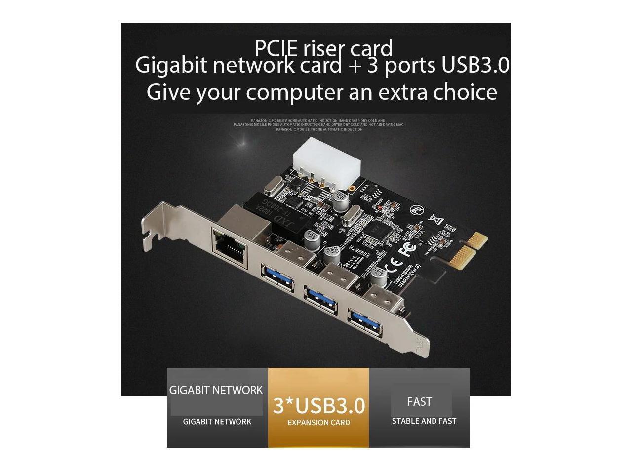 PCIe to External 3 ports USB 3.0 RJ45 Gigabit Ethernet Network card LAN Combo PCI express card with 4P power supply 1000MBPs