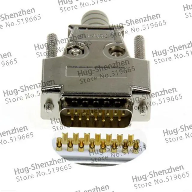 • Top D-Sub 15-pin DB15 2 row gold plate plug (male) solid pin module + removable metal shell housing