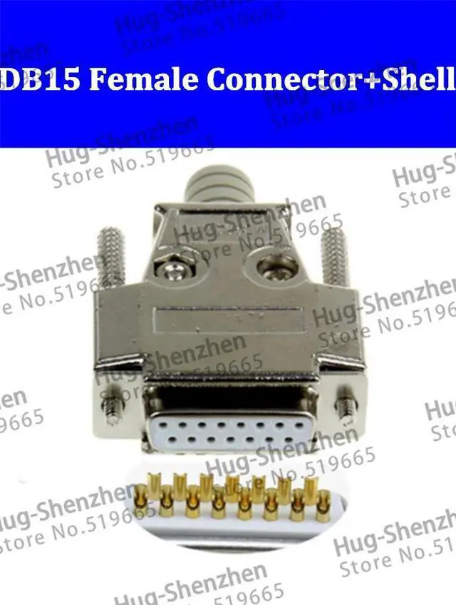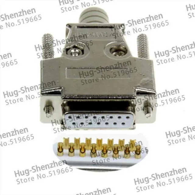 • Top D-Sub 15-pin DB15 2 row gold plate plug (female) solid pin module + removable metal shell housing