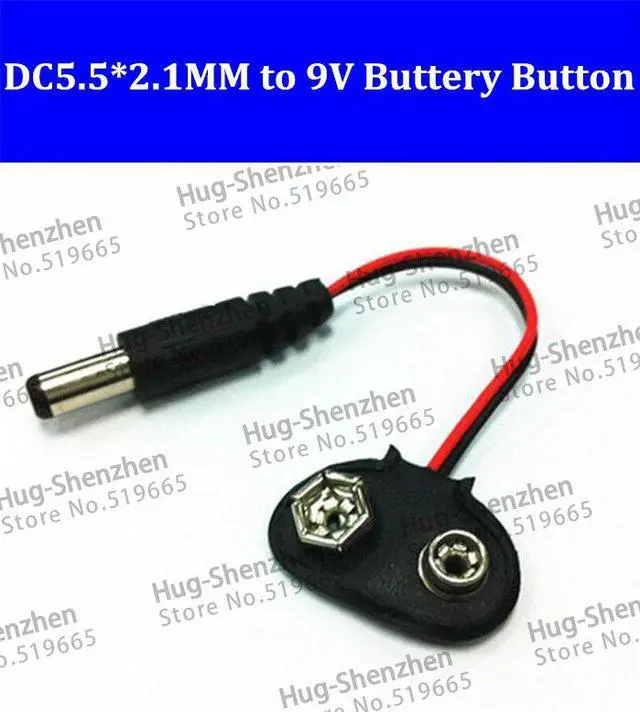 • 20pcs/lot DC5.5*2.1mm male to 9V battery button /button wire with 10CM