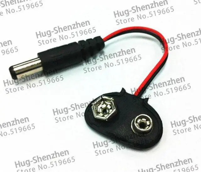 20pcs/lot DC5.5*2.1mm male to 9V battery button /button wire with 10CM