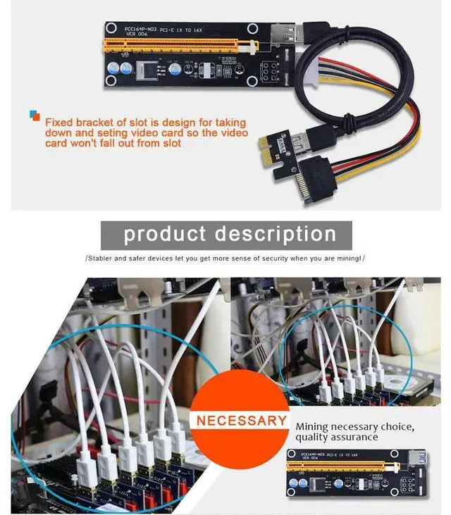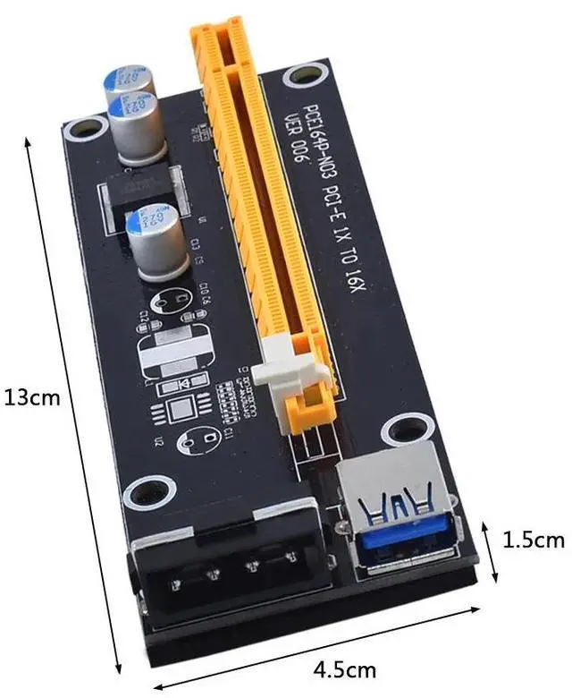 • 006 PCI-E Riser Card USB 3.0 PCI-E Riser Express 1X 4x 8x 16x Extender Riser Adapter SATA 15pin to 4pin Power Cable for BTC