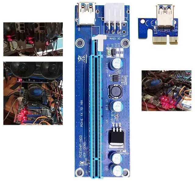 • 009S Adapter Cable PCI-E1X to 16X image Card Extension Cable Gold-Plated image Card Adapter Board Riser