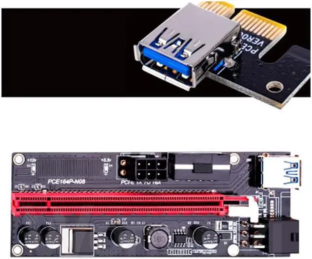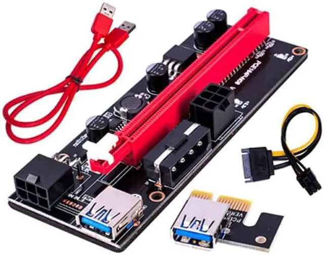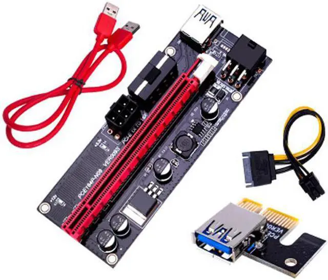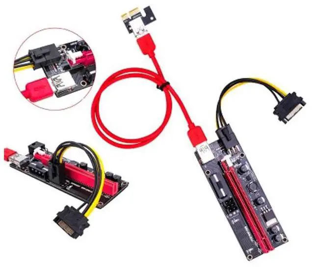 • PCI-E Riser VER 009S Express 1X 4x 8x 16x Extender Riser Adapter Card SATA 15pin to 6 pin Power Cable