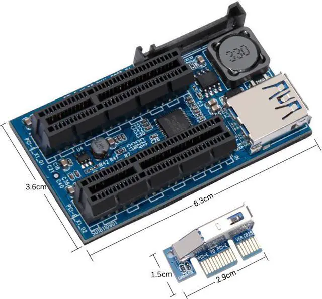 • PCIE Riser Card Adapter PCIE X1 to Dual Port PCI E X4 Extender Card Add On Card PCI Express USB 3.0 Raiser Expansion Cable