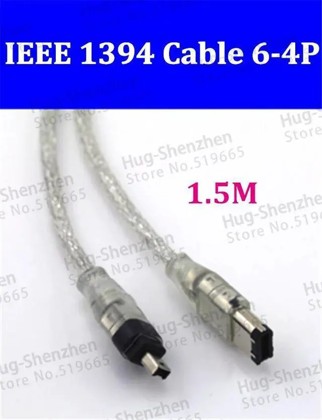 • RETAIL 2PCS 1.5M Translucent Firewire IEEE 1394 Cable 6 pin to 4 pin Cord Cable Wholesale