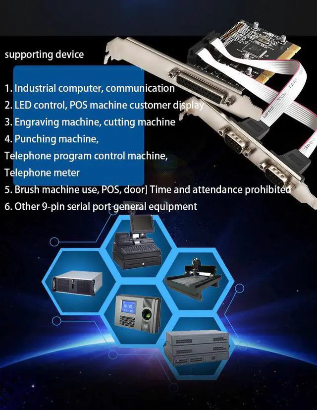 • Dual RS232 Serial COM DB9 & Printer Parallel Port LPT DB25 to PCI Adapter Converter riser Card AX9865 Chipest