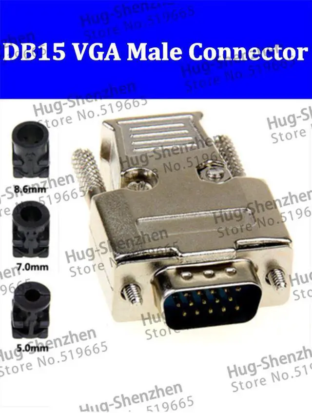• Top D-Sub 15-pin DB15 VGA 3 row plug (male) solid pin module + removable metal shell cover housing--2pcs/lot