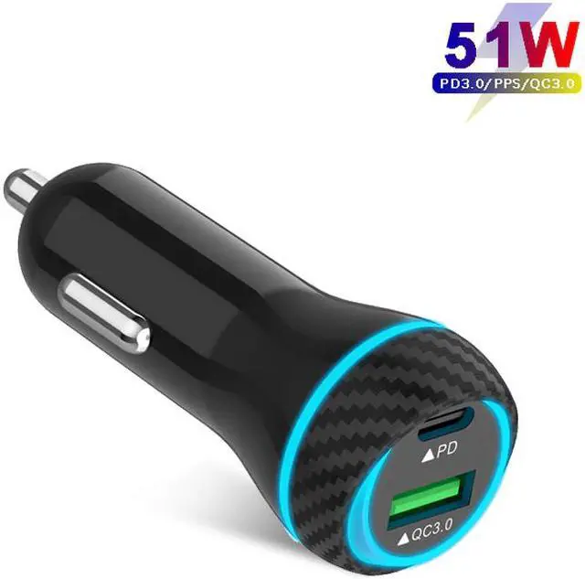 • 51W Fast Car Charger USB-C PPS/PD 33W/25W/20W Quick Charging Adapter For iPhone 12 Pro Max 11 XS Max SAMSUNG Note 20 S20+ QC3.0
